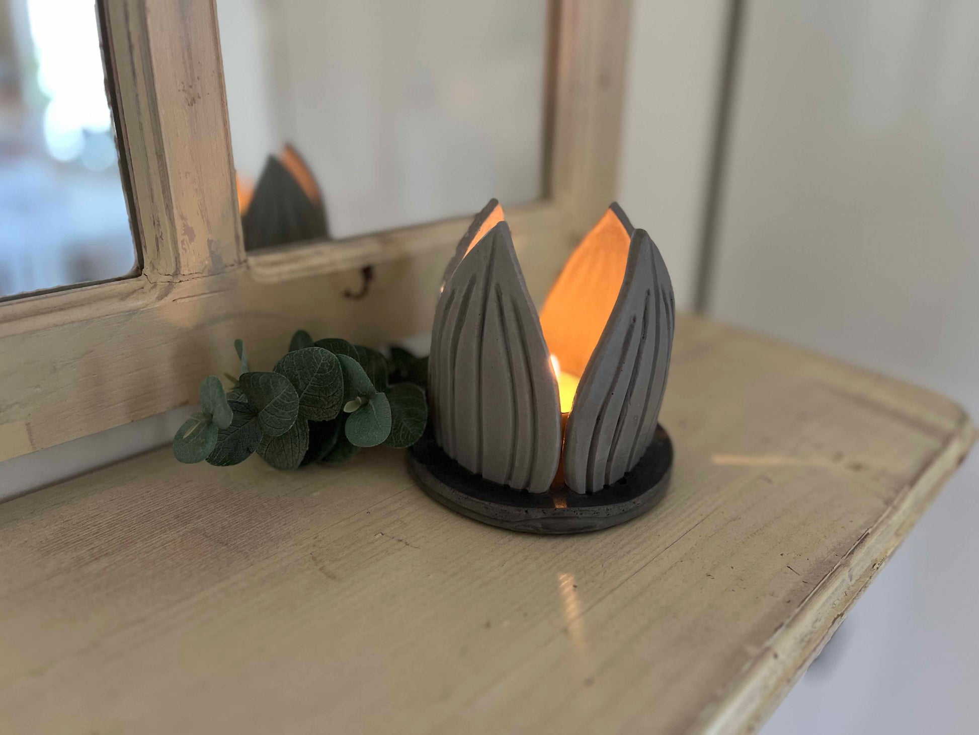 Ljuslyktan Eila är skapad i materialet Jesmonite. Du kan välja mellan flera olika färger.
